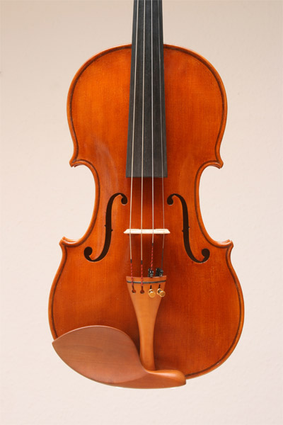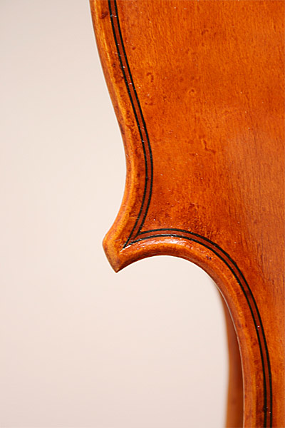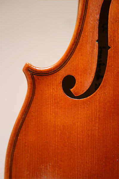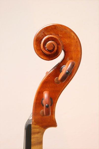 Das Modell von Schnecke und Korpusumriss ist Jakob Stainer frei nachempfunden, die F-Löcher hingegen frei nach Nicola Amati.
