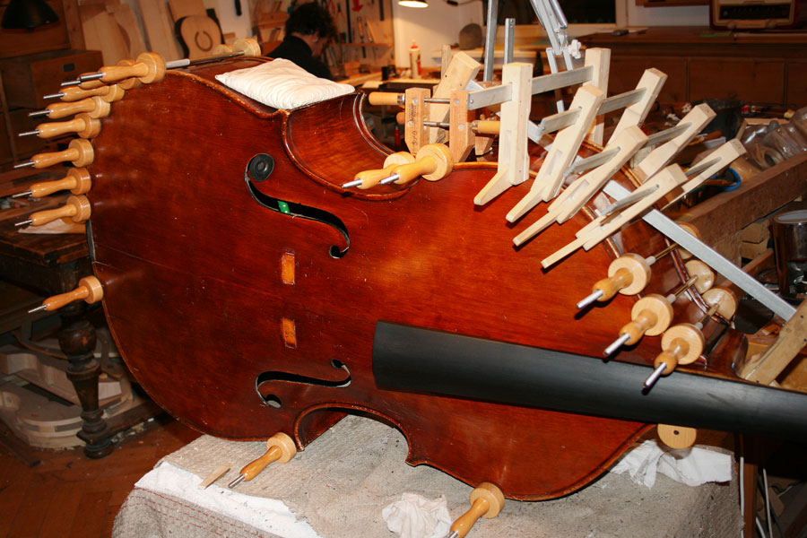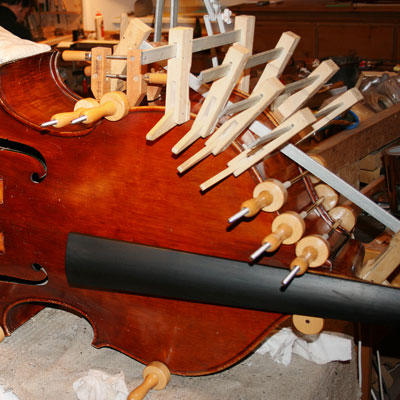 Violoncelli mit eingefallenen Decken, Geigen oder Bratschen mit Trümmerbrüchen oder Stimmstockrissen, sogar Kontrabässe mit Schäden an allen Ecken und Enden - in unserer Werkstatt werden Probleme gelöst.
