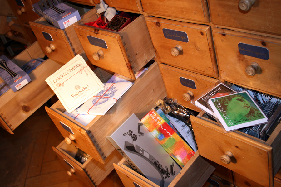 Eine kleine Bogenauswahl für Geige, Bratsche und Violoncello Geigenkästen (Artonus, Gewa Strato Lightweight), Cellosäcke, Saiten (Dominant, Tonica, Evah Pirazzi, Obligato, Passione, Jargar, Larsen), Schulterstützen (Kun, Wolf, Bonmusica), Kinnhalter (viele verschiedene Modelle), Saitenhalter, Dämpfer, Kolophonium (Hidersine, Kaplan, Hill, Bernardel, Nyman), Wolftöter, Wirbelseife, und noch einiges mehr.